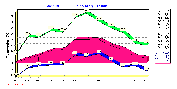 Klima-Diagramme 2019 Heinzenberg/Taunus