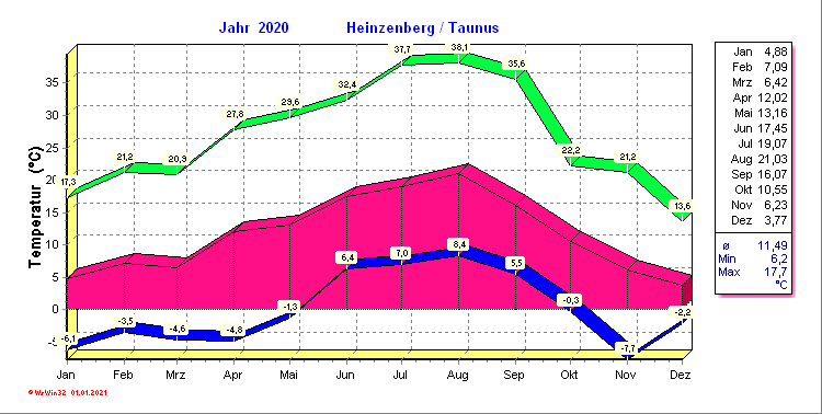 Klima-Diagramme 2020 Heinzenberg/Taunus