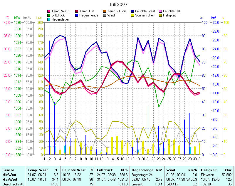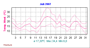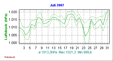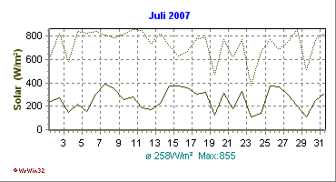 Monatsdiagramm Juli 2007 Die Kurven zeigen den Durchschnittswert des jeweiligen Tages an |