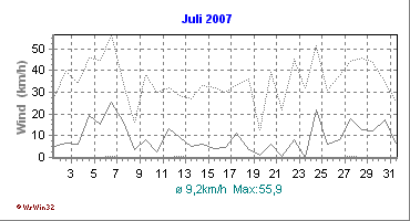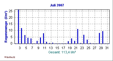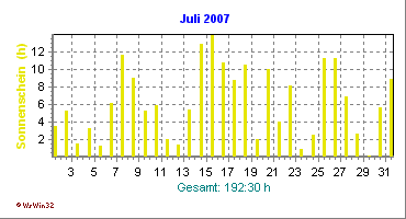 Wetter-Monatsübersicht Juli 2007 | ||||||||||||||||||||||||||||
