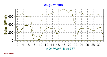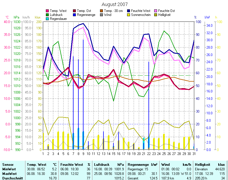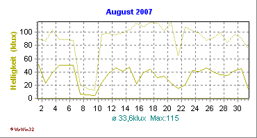 Monatsdiagramm August 2007 Die Kurven zeigen den Durchschnittswert des jeweiligen Tages an |