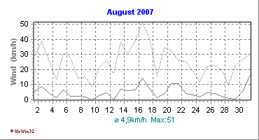 Wetter-Monatsübersicht August 2007 | ||||||||||||||||||||||||||||