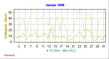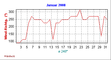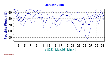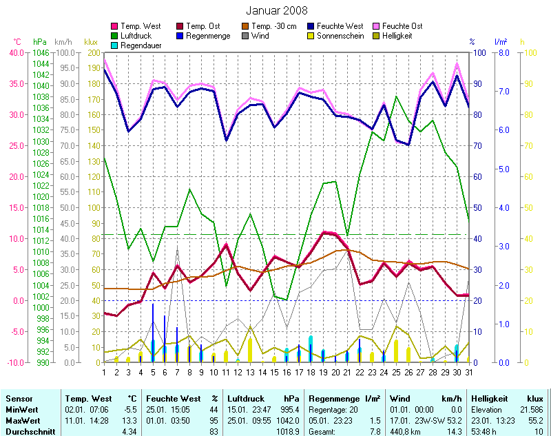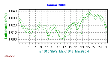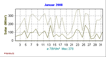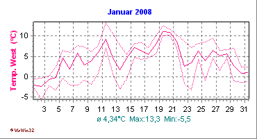 Monatsdiagramm Januar 2008 Die Kurven zeigen den Durchschnittswert des jeweiligen Tages an |