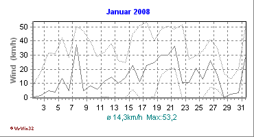 Wetter-Monatsübersicht Januar 2008 | ||||||||||||||||||||||||||||