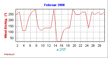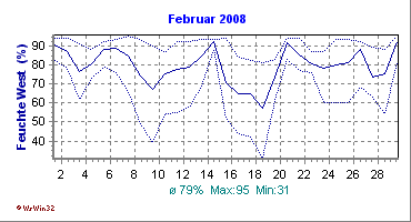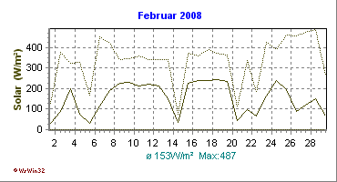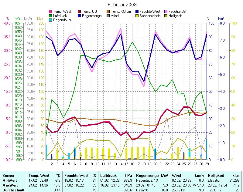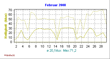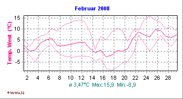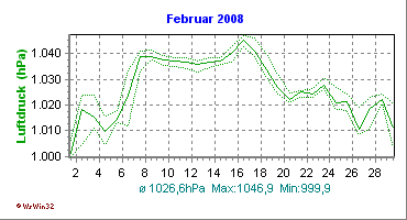 Monatsdiagramm Februar 2008 Die Kurven zeigen den Durchschnittswert des jeweiligen Tages an |