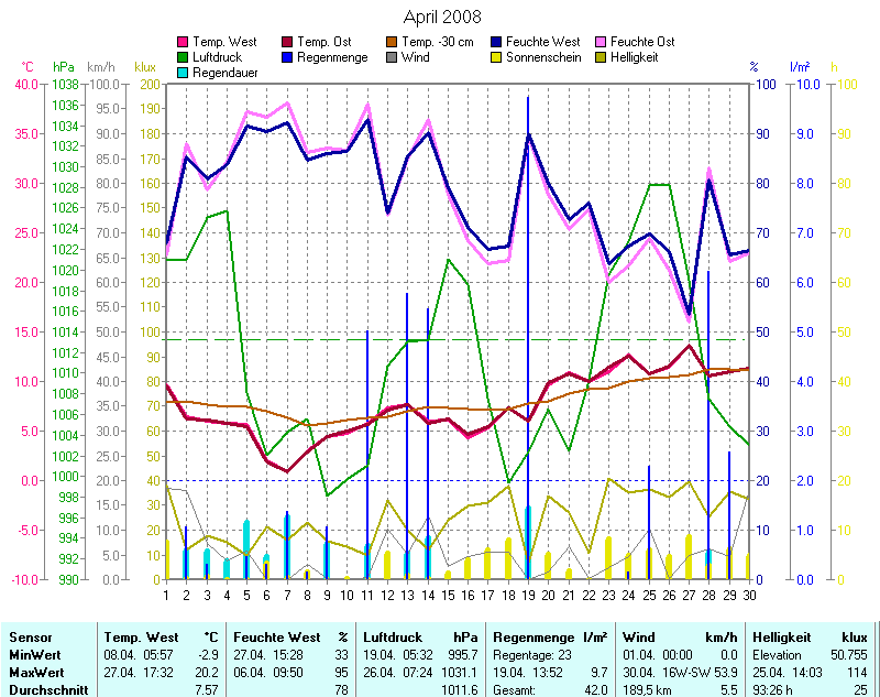 Wetter-Monatsübersicht April 2008 | ||||||||||||||||||||||||||||