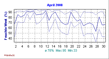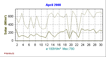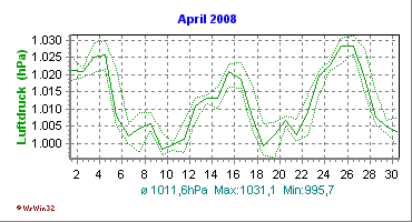 Monatsdiagramm April 2008 Die Kurven zeigen den Durchschnittswert des jeweiligen Tages an |