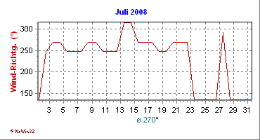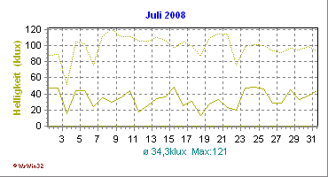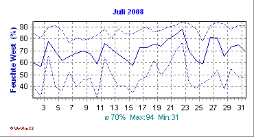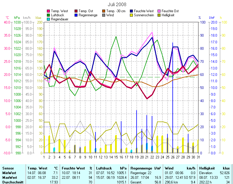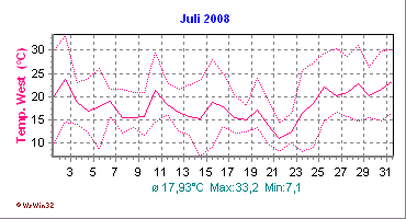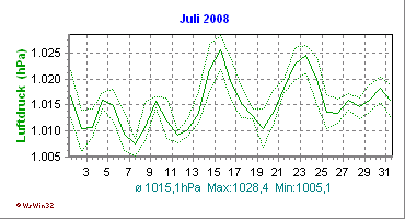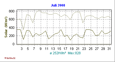 Monatsdiagramm Juli 2008 Die Kurven zeigen den Durchschnittswert des jeweiligen Tages an |