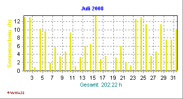 Wetter-Monatsübersicht Juli 2008 | ||||||||||||||||||||||||||||