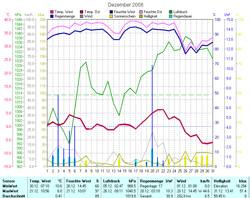 Wetter-Monatsübersicht Dezember 2008 | ||||||||||||||||||||||||||||