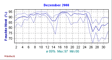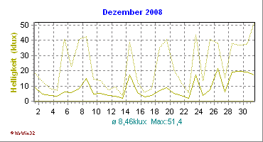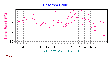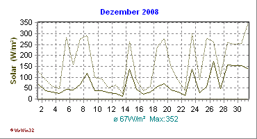Monatsdiagramm Dezember 2008 Die Kurven zeigen den Durchschnittswert des jeweiligen Tages an |