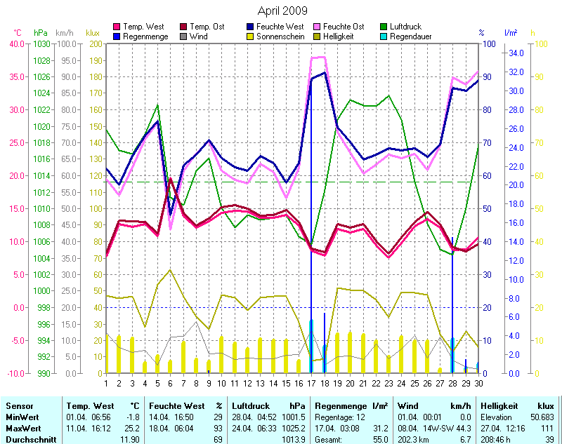 Wetter-Monatsübersicht April 2009 | ||||||||||||||||||||||||||||