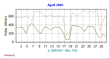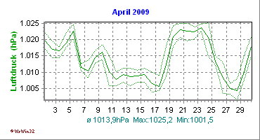 Monatsdiagramm April 2009 Die Kurven zeigen den Durchschnittswert des jeweiligen Tages an |