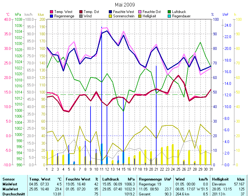 Wetter-Monatsübersicht Mai 2009 | ||||||||||||||||||||||||||||