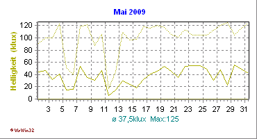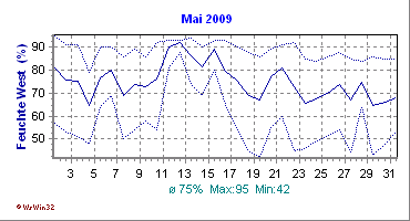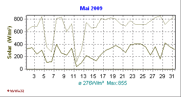 Monatsdiagramm Mai 2009 Die Kurven zeigen den Durchschnittswert des jeweiligen Tages an |