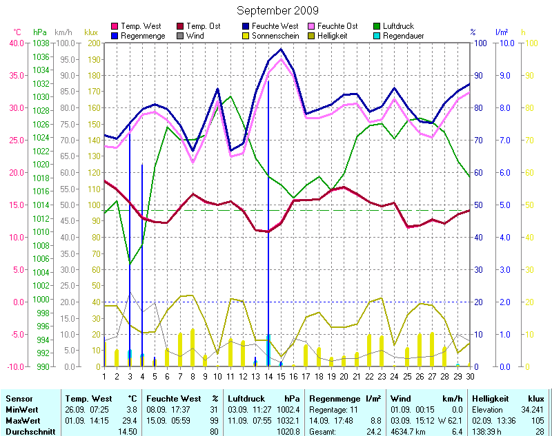 Wetter-Monatsübersicht September 2009 | ||||||||||||||||||||||||||||