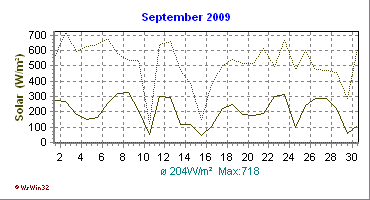 Monatsdiagramm September 2009 Die Kurven zeigen den Durchschnittswert des jeweiligen Tages an |