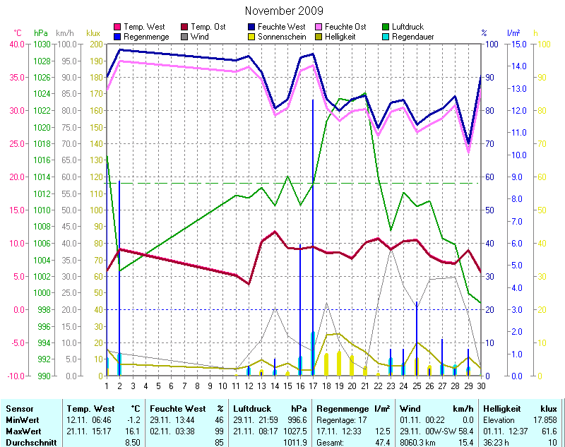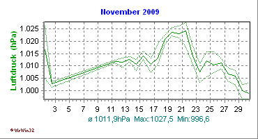 Wetter-Monatsübersicht November 2009 | ||||||||||||||||||||||||||||