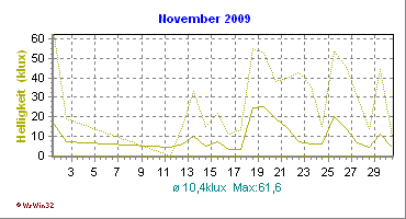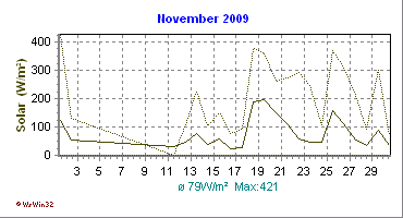 Monatsdiagramm November 2009 Die Kurven zeigen den Durchschnittswert des jeweiligen Tages an |