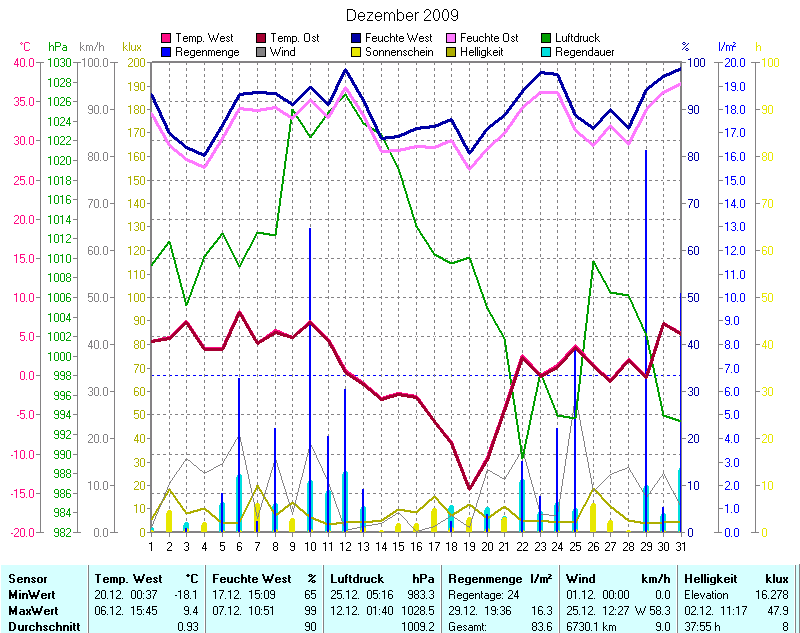 Wetter-Monatsübersicht Dezember 2009 | ||||||||||||||||||||||||||||