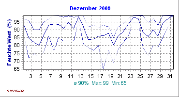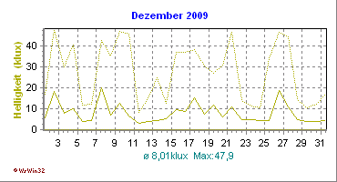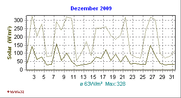Monatsdiagramm Dezember 2009 Die Kurven zeigen den Durchschnittswert des jeweiligen Tages an |