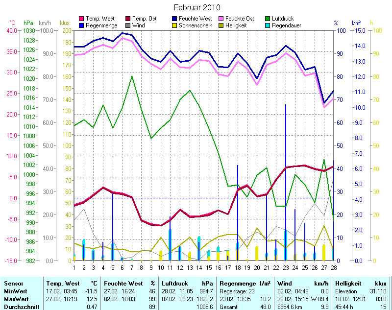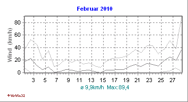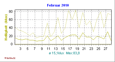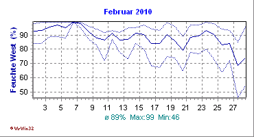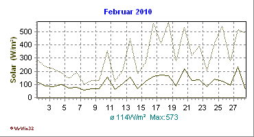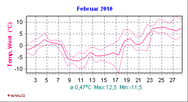 Monatsdiagramm Februar 2010 Die Kurven zeigen den Durchschnittswert des jeweiligen Tages an |