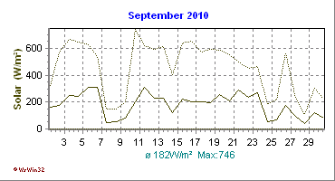 Monatsdiagramm September 2010 Die Kurven zeigen den Durchschnittswert des jeweiligen Tages an |