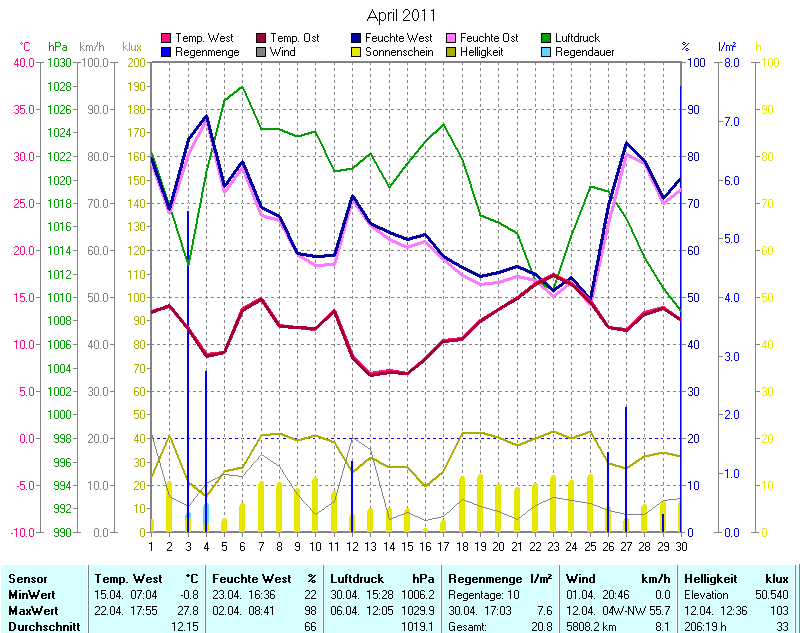 Wetter-Monatsübersicht April 2011 | ||||||||||||||||||||||||||||
