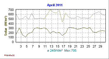 Monatsdiagramm April 2011 Die Kurven zeigen den Durchschnittswert des jeweiligen Tages an |