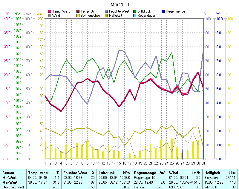 Wetter-Monatsübersicht Mai 2011 | ||||||||||||||||||||||||||||