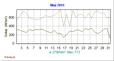 Monatsdiagramm Mai 2011 Die Kurven zeigen den Durchschnittswert des jeweiligen Tages an |