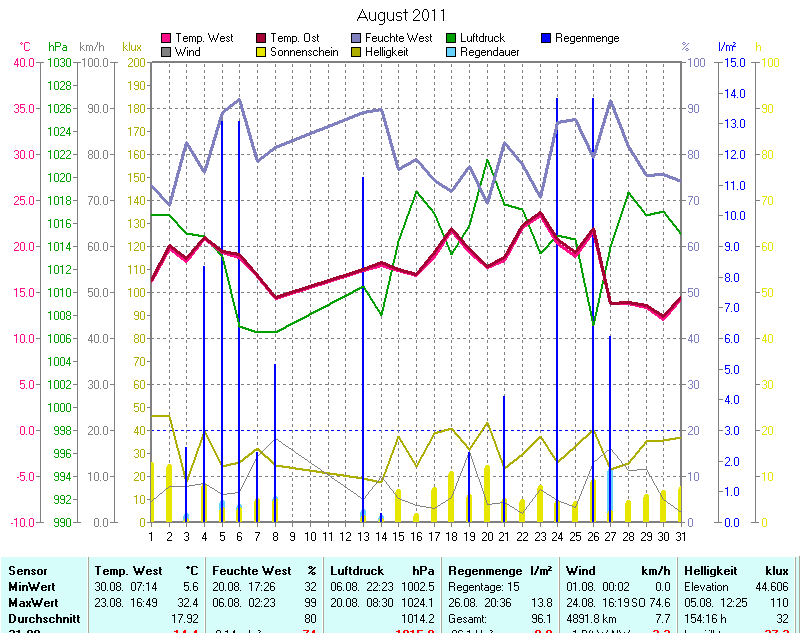 Wetter-Monatsübersicht August 2011 | ||||||||||||||||||||||||||||