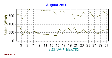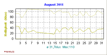 Monatsdiagramm August 2011 Die Kurven zeigen den Durchschnittswert des jeweiligen Tages an |