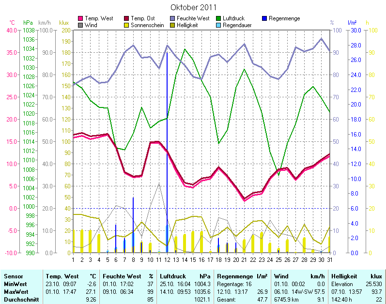 Wetter-Monatsübersicht Oktober 2011 | ||||||||||||||||||||||||||||