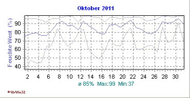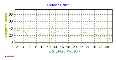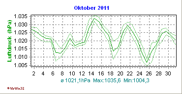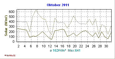 Monatsdiagramm Oktober 2011 Die Kurven zeigen den Durchschnittswert des jeweiligen Tages an |