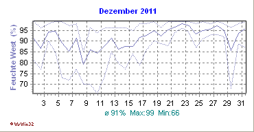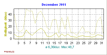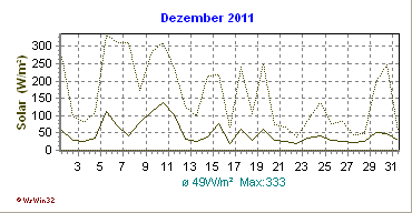 Monatsdiagramm Dezember 2011 Die Kurven zeigen den Durchschnittswert des jeweiligen Tages an |