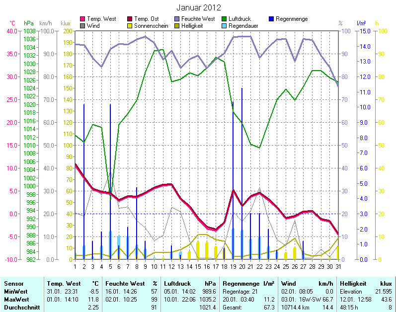 Wetter-Monatsübersicht Januar 2012 | ||||||||||||||||||||||||||||