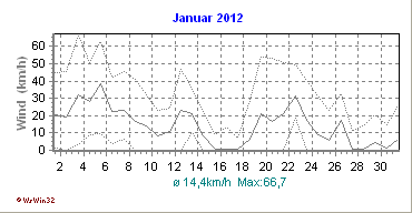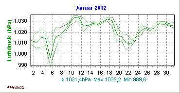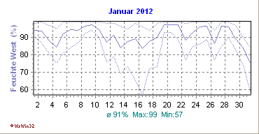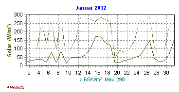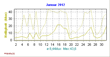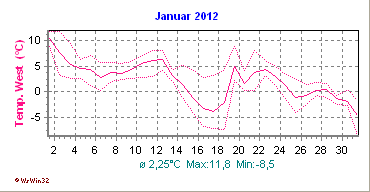 Monatsdiagramm Januar 2012 Die Kurven zeigen den Durchschnittswert des jeweiligen Tages an |