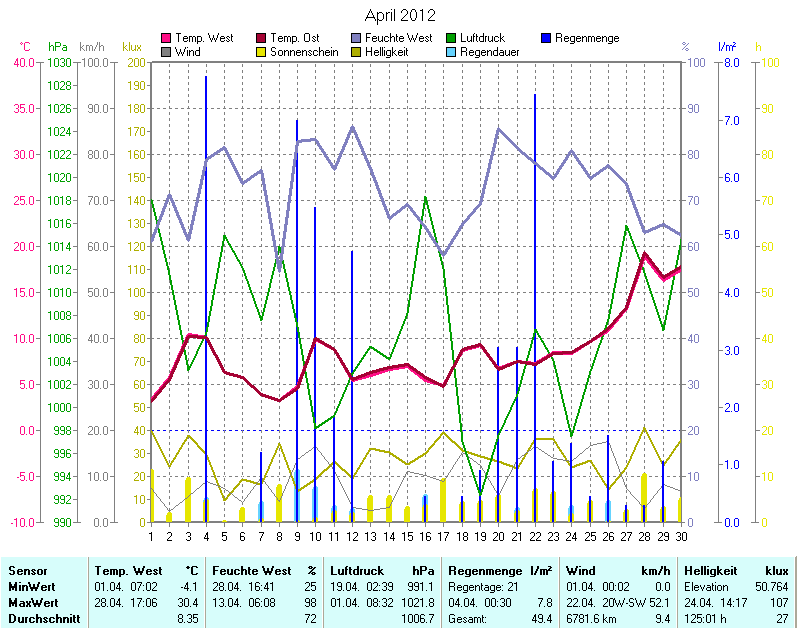 Wetter-Monatsübersicht April 2012 | ||||||||||||||||||||||||||||