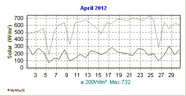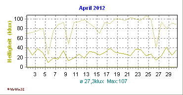 Monatsdiagramm April 2012 Die Kurven zeigen den Durchschnittswert des jeweiligen Tages an |
