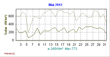 Monatsdiagramm Mai 2012 Die Kurven zeigen den Durchschnittswert des jeweiligen Tages an |