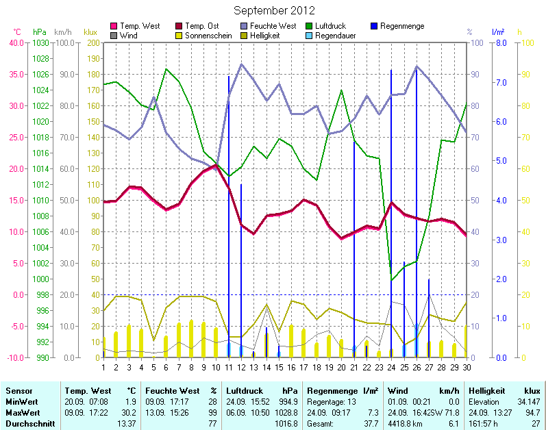 Wetter-Monatsübersicht September 2012 | ||||||||||||||||||||||||||||
