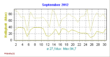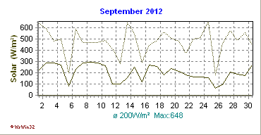 Monatsdiagramm September 2012 Die Kurven zeigen den Durchschnittswert des jeweiligen Tages an |