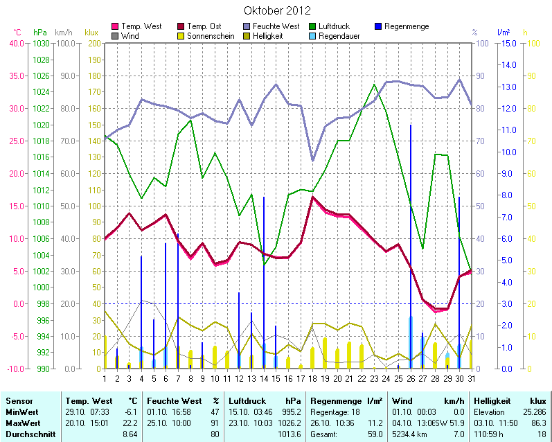 Wetter-Monatsübersicht Oktober 2012 | ||||||||||||||||||||||||||||