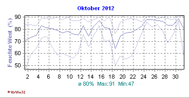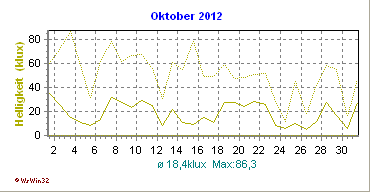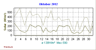 Monatsdiagramm Oktober 2012 Die Kurven zeigen den Durchschnittswert des jeweiligen Tages an |