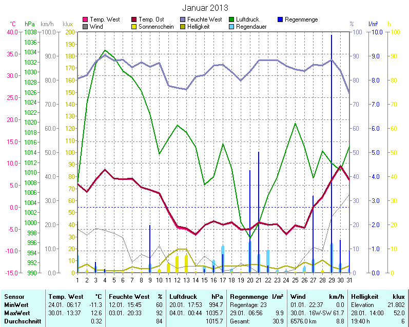 Wetter-Monatsübersicht Januar 2013 | ||||||||||||||||||||||||||||