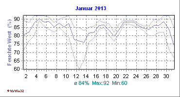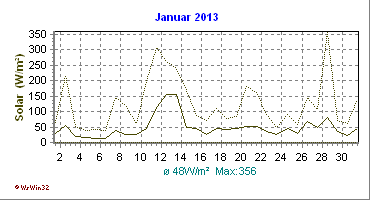 Monatsdiagramm Januar 2013 Die Kurven zeigen den Durchschnittswert des jeweiligen Tages an |
