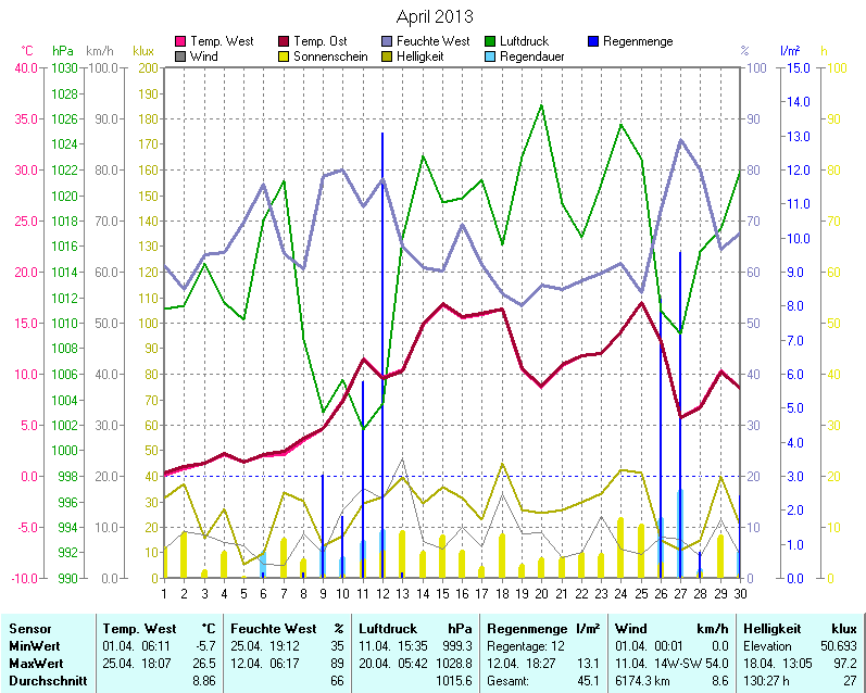 Wetter-Monatsübersicht April 2013 | ||||||||||||||||||||||||||||