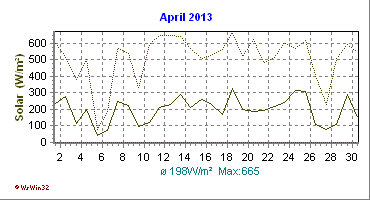 Monatsdiagramm April 2013 Die Kurven zeigen den Durchschnittswert des jeweiligen Tages an |