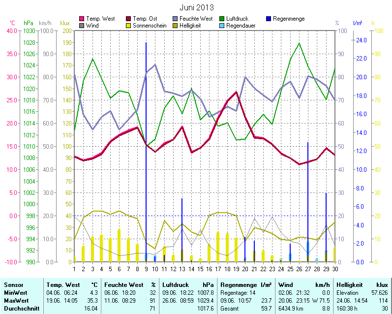 Wetter-Monatsübersicht Juni 2013 | ||||||||||||||||||||||||||||